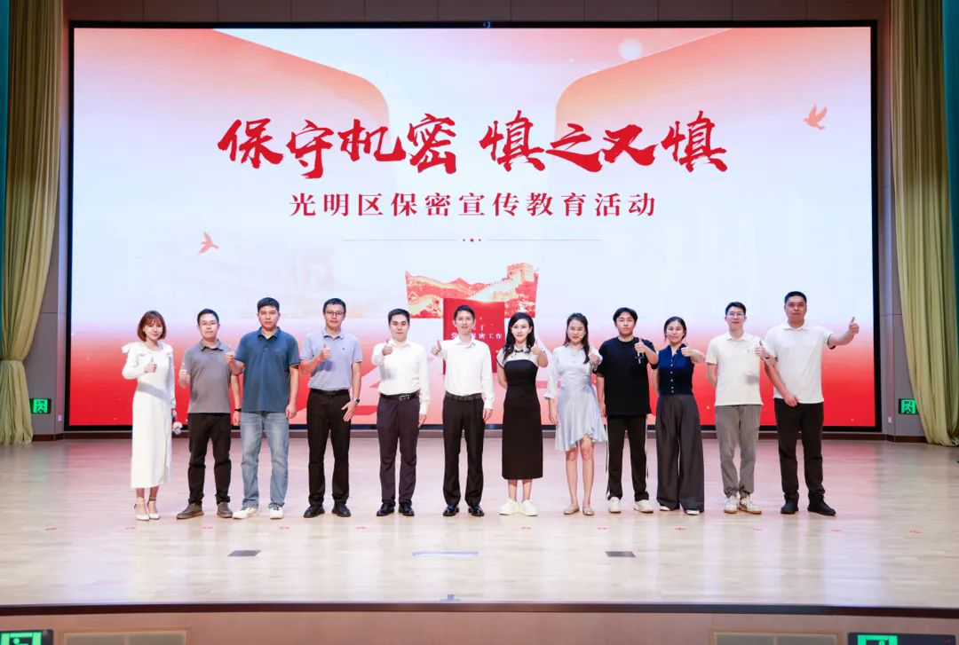 近日,深圳市光明区350余名企事业单位代表走进光明区委党校,沉浸式参加了一场保密宣传教育活动。活动由深圳市国家保密局指导,深圳市光明区国家保密局主办,以“保守机密 慎之又慎”为主题,精心设置专题党课、情景剧、互动游戏三大创新模块,将党的保密历史、现实风险与趣味实践深度融合,为现场观众上了一堂生动的“保密必修课”。