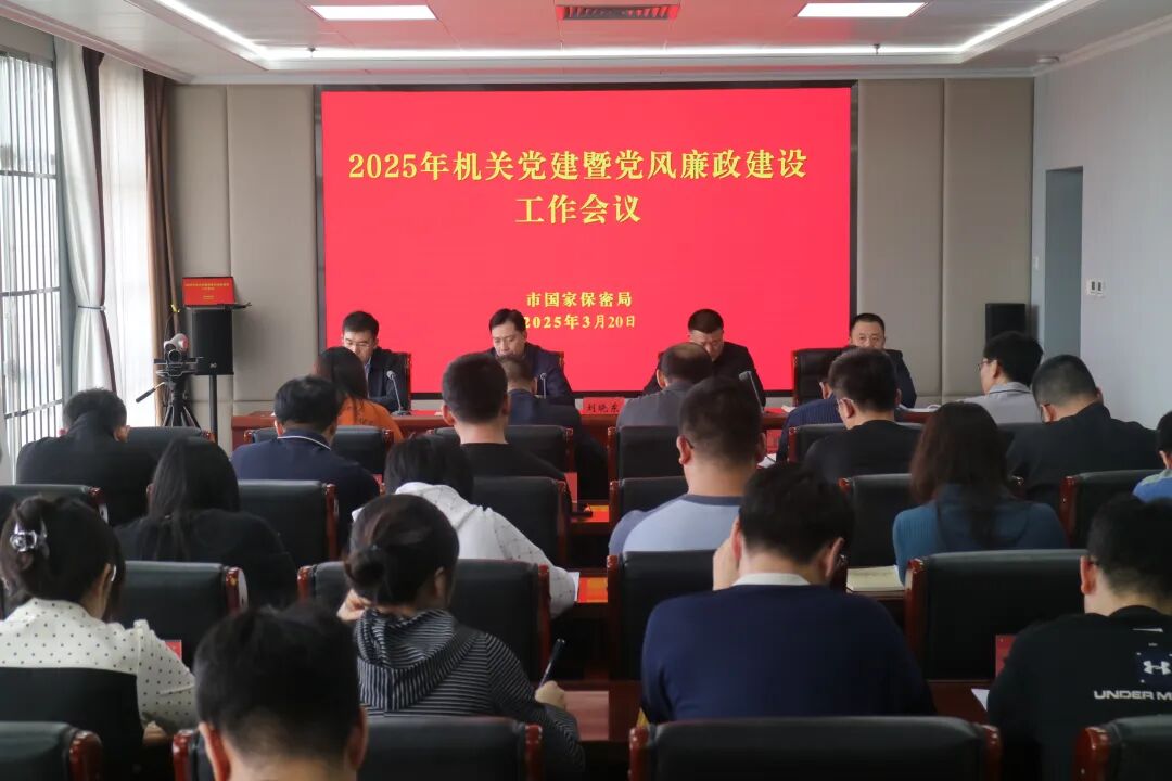 3月20日下午,市国家保密局召开2025年度机关党建暨党风廉政建设工作会议,局班子成员、派驻纪检监察组组长、机关干部职工参加会议。