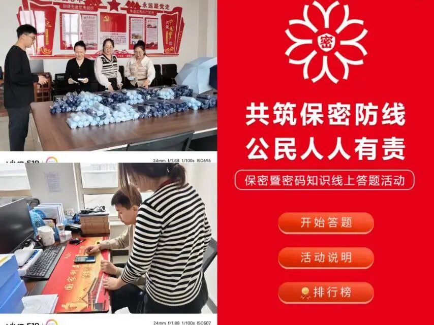 线上开展了以“共筑保密防线,公民人人有责”为主题的有奖知识竞答活动,此次线上答题涵盖保密常识、密码安全等方面知识,广大干部职工积极响应、广泛参与,共计有2500余人次参加答题活动。答题结束后为前300名发放精美奖品。