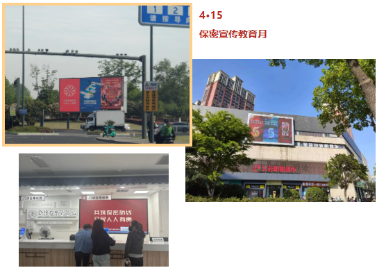 与常州市委宣传部对接,依托各类媒体平台,于4月16日至5月15日,在全市广播电视、公共交通、户外大屏、门户网站、新媒体等各类平台,在村(社区)、医院、超市、公交站台等各类场所,播放保密公益宣传片及宣传海报,张贴宣传标语,营造全市浓厚保密宣教氛围,推动保密工作向全社会走近,提升社会公众保密意识,普及保密知识。